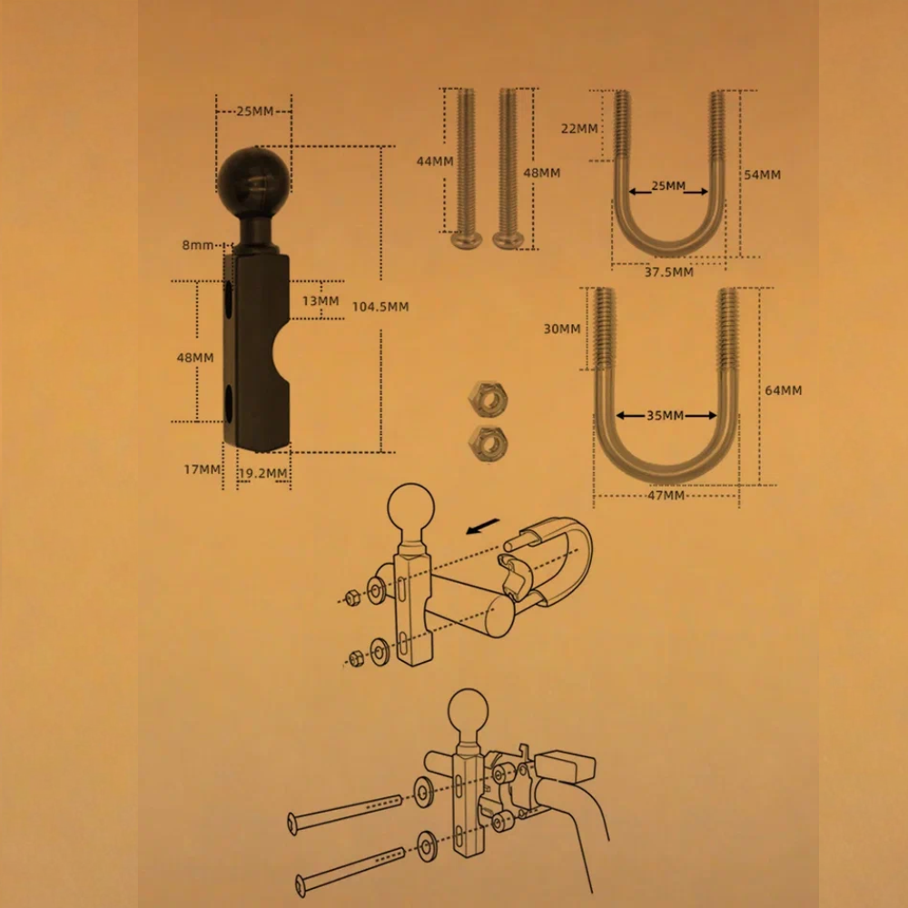 Держатель выполнен из алюминиевого сплава, шар прорезиненный.