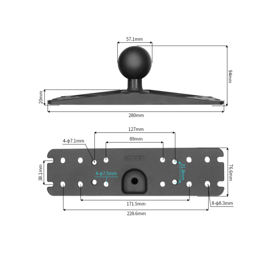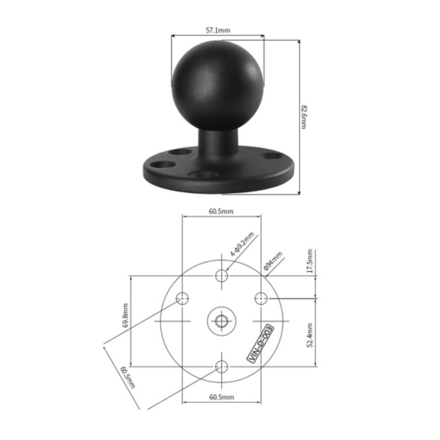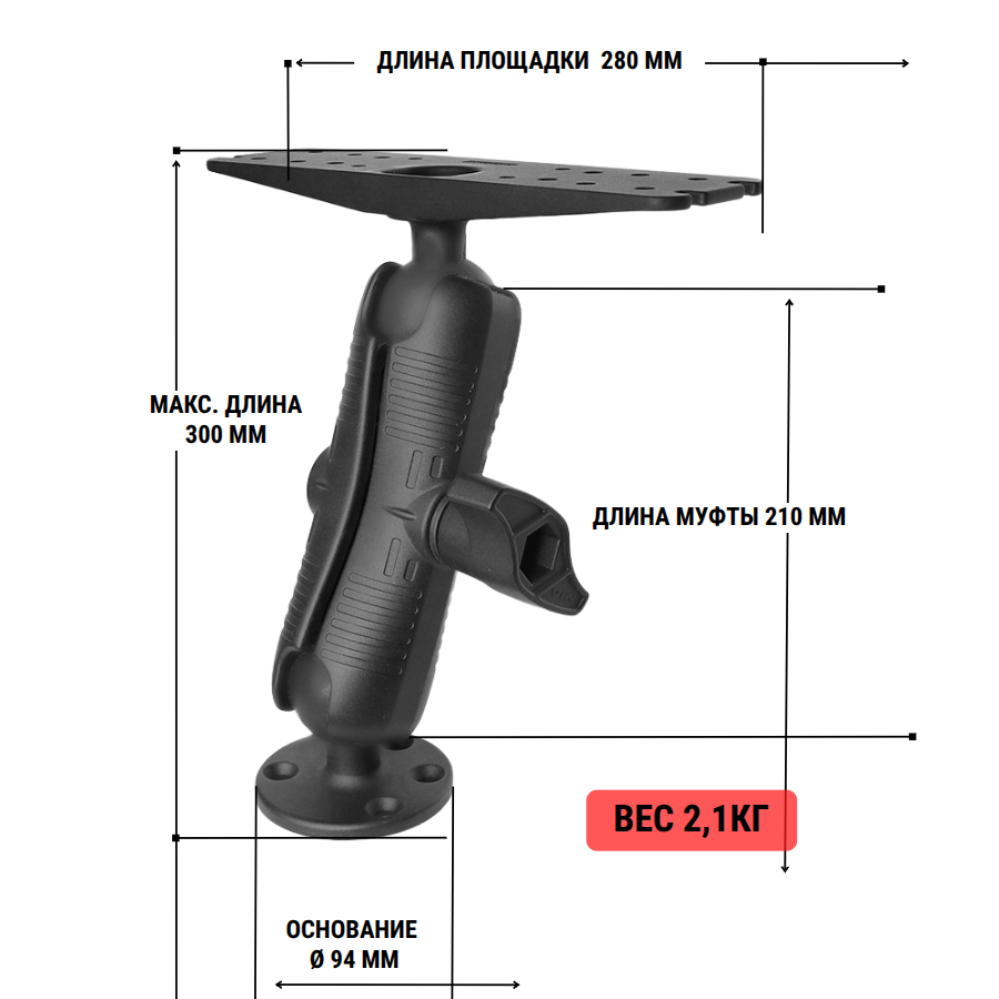 Крепление имеет типоразмер D (диаметр шара 2,25 дюйма / 57.1mm), рекомендуемая масса закрепляемого устройства при обычном режиме эксплуатации не более 8 кг.