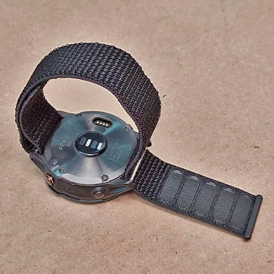 Нейлоновый ремешок UltraFit OneLoop (как на Garmin Enduro 2) с постоянной фиксацией на одной стороне (4 липучки велкро), и настраиваемой длинне на другой. Липучки велкро (5 шт) надежно фиксируют ремешок, а быстрота использования позволяет расслабить или затянуть ремешок в течение дня в зависимости от задач.