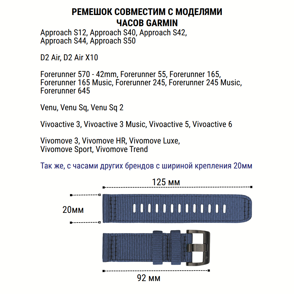 Ремешок для Garmin Quick Release 20 мм нейлоновый (Синий)