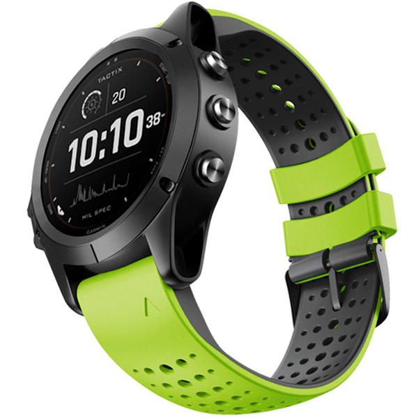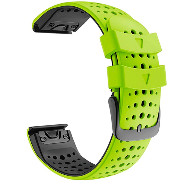Ремешок дышащий Athlet 22 мм. для Garmin Fenix 7/6/5, EPIX 2, MARQ, Forerunner 935 / 945 / 955 / 965, instinct, instinct 2 двухцветный силиконовый быстросъемный (Лайм/черный)