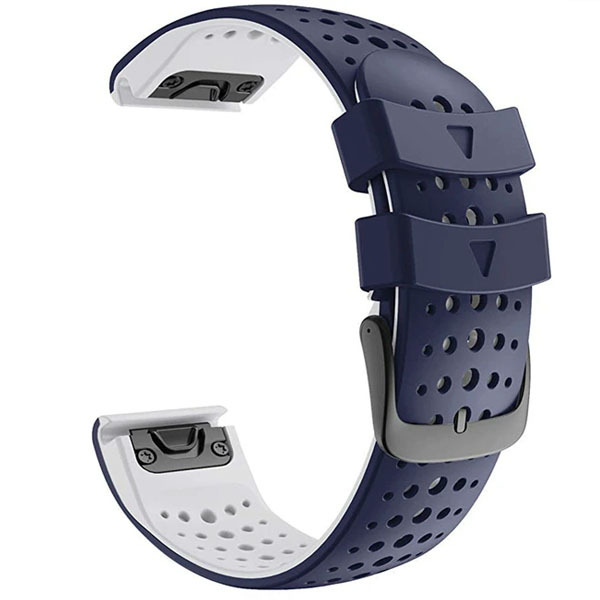 Ремешок дышащий Athlet 22 мм. для Garmin Fenix 7/6/5, EPIX 2, MARQ, Forerunner 935 / 945 / 955 / 965, instinct, instinct 2 двухцветный силиконовый быстросъемный (Синий/белый)