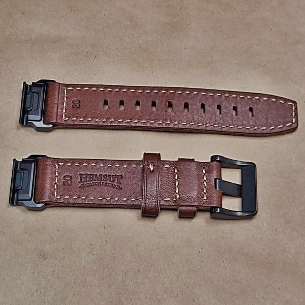 Ремешок 20 мм натуральная кожа с быстросъемным креплением QuickFit для часов Garmin. Изготовлен из высококачественной натуральной кожи обеспечивающей прочность и долговечность.