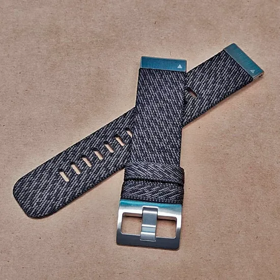 Ремешок 22 мм для Garmin (в стиле MARQ Gen 2), нейлоновый, жакардовое плетение, с системой быстрой замены QuickFit. Фурнитура выполены из сатиниpовaнной нержавеющей стали, винты из легированной стали.