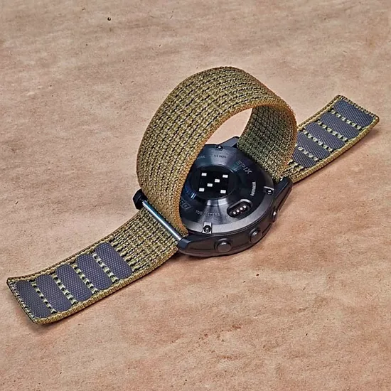 Невесомый (вес меньше 10 гр.) ремешок из нейлона. Быстросохнущий, дышащий, нелиняющий идеально подойдет как для повседневного использования, так и для тренировок в спортзале и на улице. Липучки (по 5шт. с каждой стороны) надежно фиксируют ремешок на запястье.