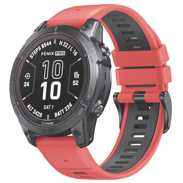 Сменный силиконовый ремешок 22мм с системой быстрой замены QuickFit для часов Garmin, выполнен в стиле Garmin Fenix 7 Pro. Изготовлен из высококачественного эластичного медицинского гипоаллергенного силикона.