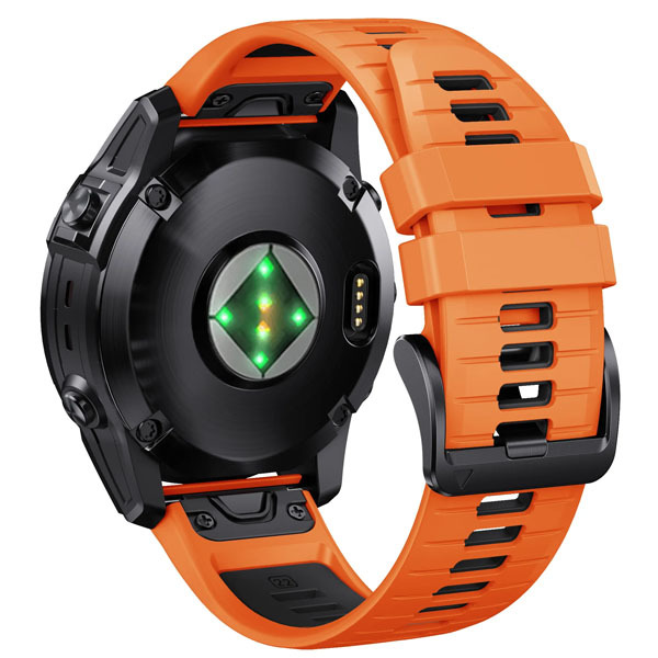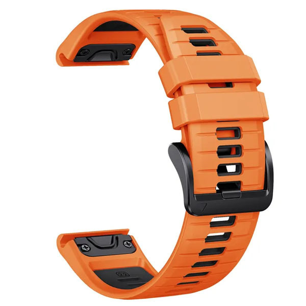 Ремешок силиконовый QuickFit 22 мм. для Garmin Fenix 7 PRO/7/6/5/5 plus, Quatix 5, MARQ, Forerunner 935 / 945, instinct, instinct 2 быстросъемный ( стиль Fenix 7 Pro ), оранжевый/черный