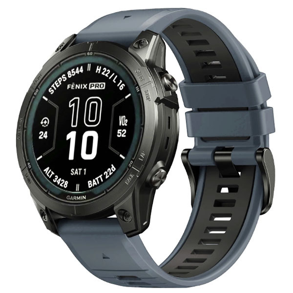 Сменный силиконовый ремешок 22мм с системой быстрой замены QuickFit для часов Garmin, выполнен в стиле Garmin Fenix 7 Pro. Изготовлен из высококачественного эластичного медицинского гипоаллергенного силикона.