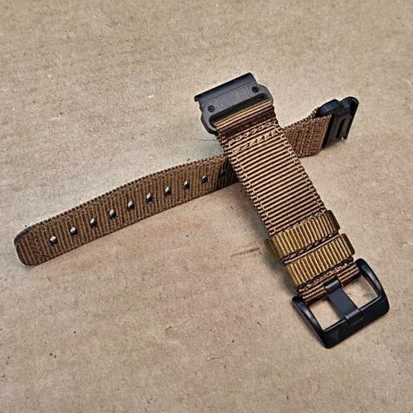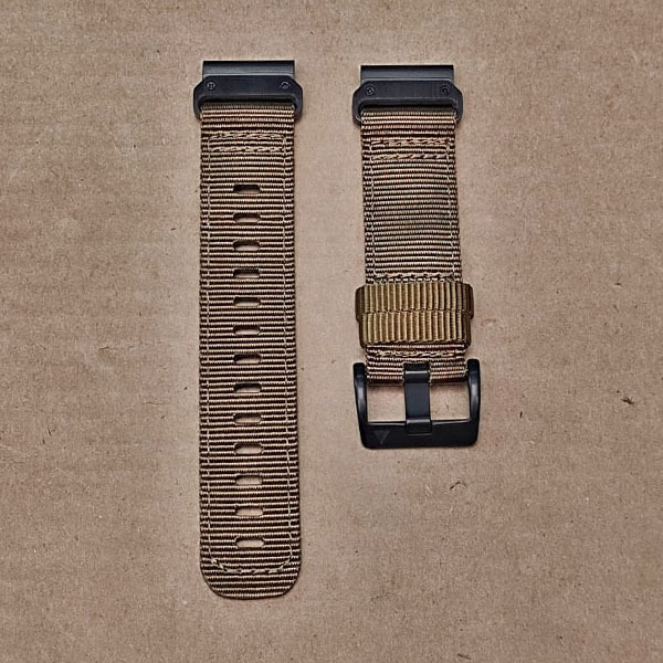 Ремешок тактический Tactix 22 мм. для Garmin Fenix 7 / 6 / 5, Forerunner 935 / 945 / 955, instinct, instinct 2, Epix Gen 2 нейлоновый быстросъемный на застежке (Коричневый)