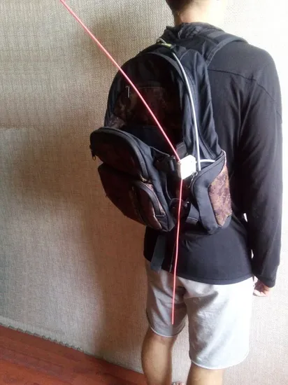 Узел крепления к рюкзаку - мет. рейка. Есть вариант размещения внутри рюкзака, с выводом "усов" наружу. При транспортировке антенну можно сворачивать в кольцо.
