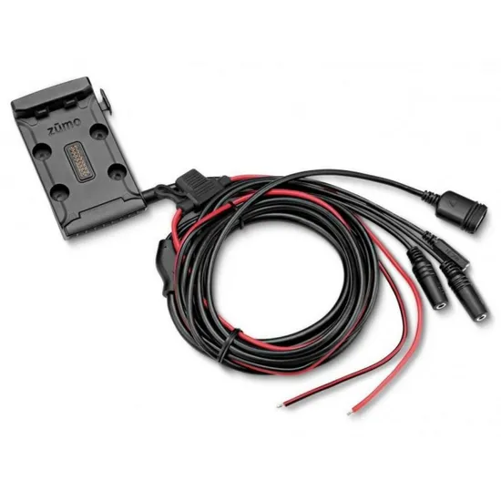 Крепление для навигаторов Garmin Zumo 590, 595 с кабелем подключения питания. Так же на жгуте имеются USB вход, аудиовыход (AUDIO OUT), аудиовход (AUDIO IN), вход для подключения микрофона (MIC IN).